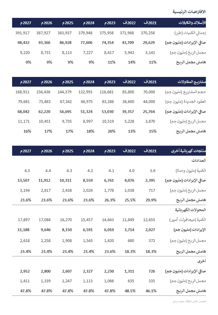 المنتجات الكهربائية: نتوقع أن تنمو الإيرادات بمعدل نمو سنوي مركب 5 أعوام بنسبة 25% لتصل إلى 27.6 مليار جم بحلول عام 2027، مدعومة بمعدلات استخدام أعلى للمحولات والطلب من أسواق التصدير.