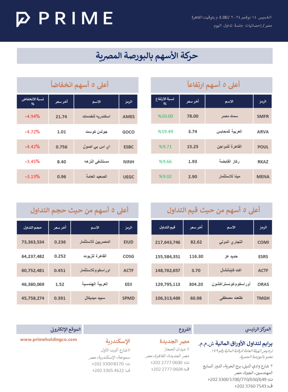 حركة الأسهم بالبورصة المصرية PRIME ResearchNov 14, 20241ShareStock Exchange 241114771KB ∙ PDF fileDownloadDownloadPreviousNext
