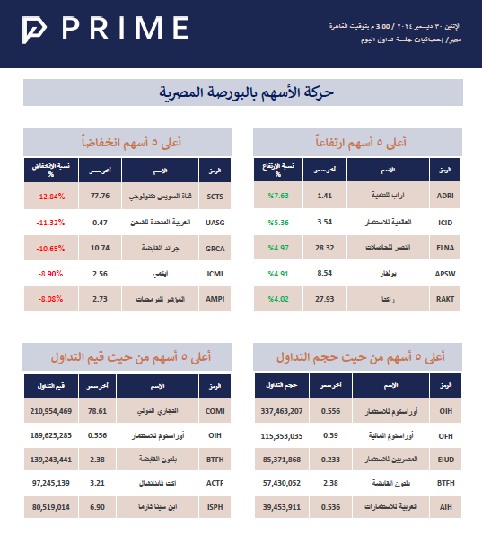 حركة الأسهم بالبورصة المصرية PRIME ResearchDec 30, 2024ShareStock Exchange 241230714KB ∙ PDF fileDownloadDownload PreviousNext