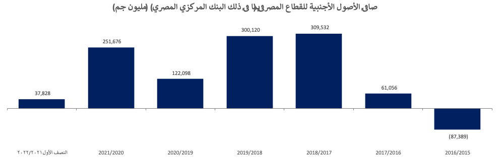 انخفض صافي الأصول الأجنبية للقطاع المصرفي المصري بشكل حاد في ديسمبر 2021 وهو الأدنى منذ العام المالي 2015/2016، مما يعكس تخارج رؤوس الأموال بسبب وضع العزوف عن المخاطرة العالمية تجاه الأسواق الناشئة.