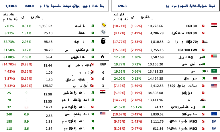 أظهرت المؤشرات المالية المستقلة لبنك فيصل الإسلامي المصري [FAIT] خلال الربع الأول 2022 ارتفاع صافي الأرباح بمقدار 119% على أساس سنوي إلى 1.2 مليار جم. جاء الارتفاع في صافي الأرباح متماشياً مع تقديراتنا، جزئياً في ضوء أرباح فروق سعر صرف العملات الأجنبية بسبب تخفيض قيمة الجنيه المصري الذي حدث في 21 مارس 2022. (إفصاح الشركة)