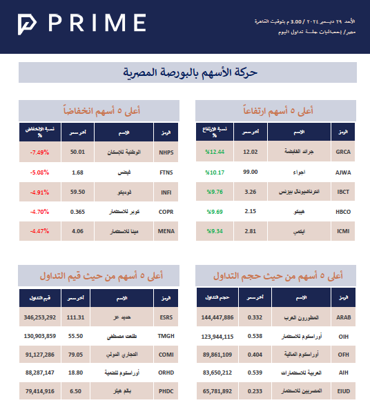 حركة الأسهم بالبورصة المصرية PRIME ResearchDec 29, 2024ShareStock Exchange 241229715KB ∙ PDF fileDownloadDownload PreviousNext
