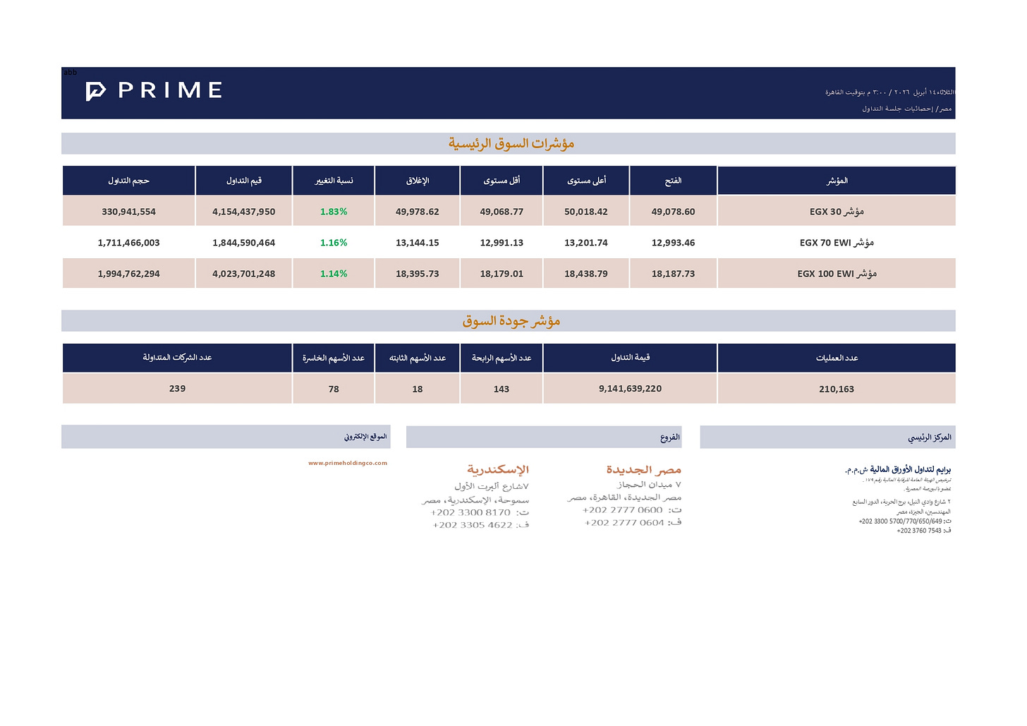 مؤشرات السوق الرئيسيةPRIME ResearchApr 14, 2026ShareIn 260414735KB ∙ PDF fileDownloadDownload Previous
