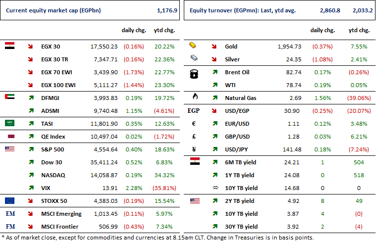 Yesterday, a block trade was executed on a 20% stake (270mn shares) of TAQA Arabia’s [TAQA] shares worth EGP1.6bn. The trade was intended to close one of TAQA’s debts by transferring its processes to one of the creditors. (EGX)