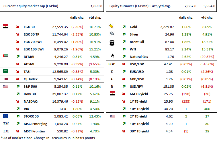 The Egyptian PM said that the government will receive the second tranch of Ras El-Hekma dues by the beginning of May 2024. We note that Egypt already received USD10bn as a first tranch. (Enterprise)