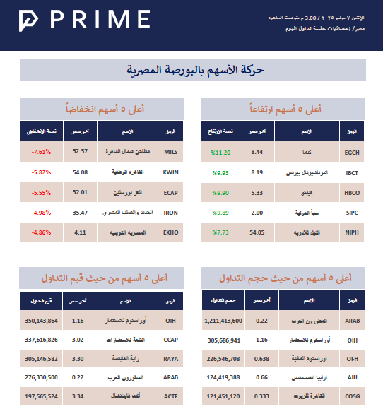 حركة الأسهم بالبورصة المصرية PRIME ResearchJul 07, 20258Share Stock Exchange 250707714KB ∙ PDF fileDownloadDownload PreviousNext