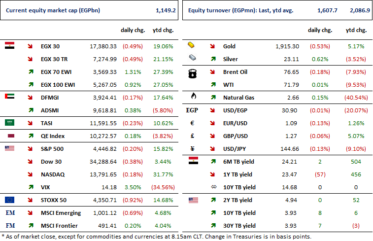 Egypt’s Purchasing Manager’s Index (PMI) for the non-oil private sector rose to 49.1 in June 2023 vs. 47.8 in May, which is the highest mark since August 2021. However, still in the contraction territory below the 50 mark. The ease in PMI is driven by price pressures, liquidity issues, and weak demand. (PMI)