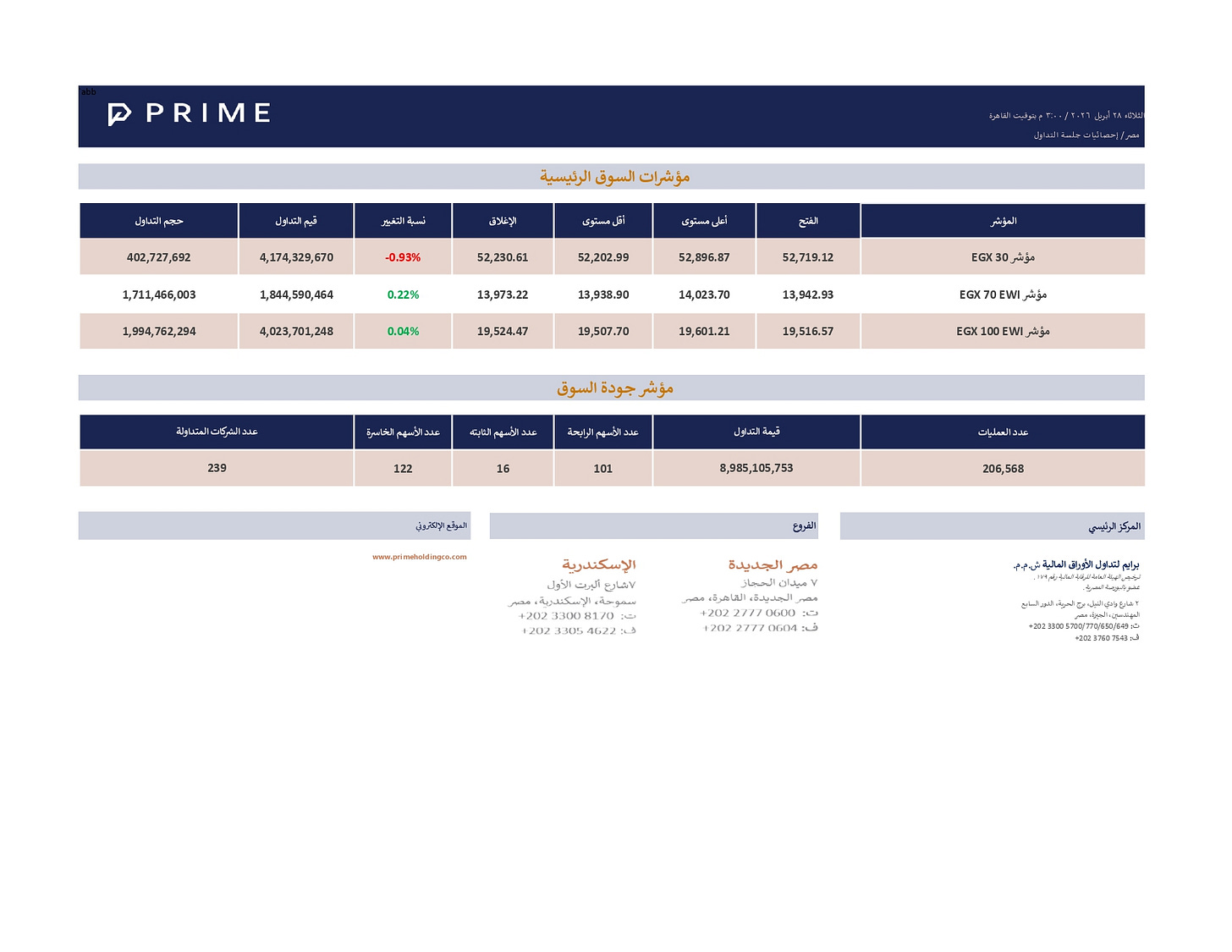 مؤشرات السوق الرئيسيةPRIME ResearchApr 28, 2026ShareIn 260428735KB ∙ PDF fileDownloadDownloadPreviousNext