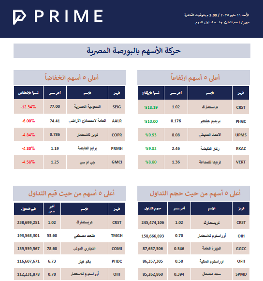 حركة الأسهم بالبورصة المصرية PRIME ResearchMay 11, 2025ShareStock Exchange 250511714KB ∙ PDF fileDownloadDownload PreviousNext