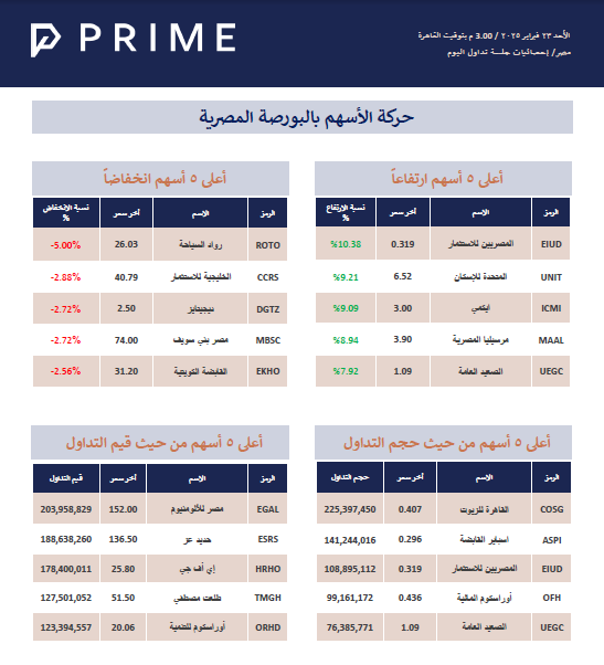 حركة الأسهم بالبورصة المصرية PRIME ResearchFeb 23, 2025ShareStock Exchange 250223715KB ∙ PDF fileDownloadDownload PreviousNext