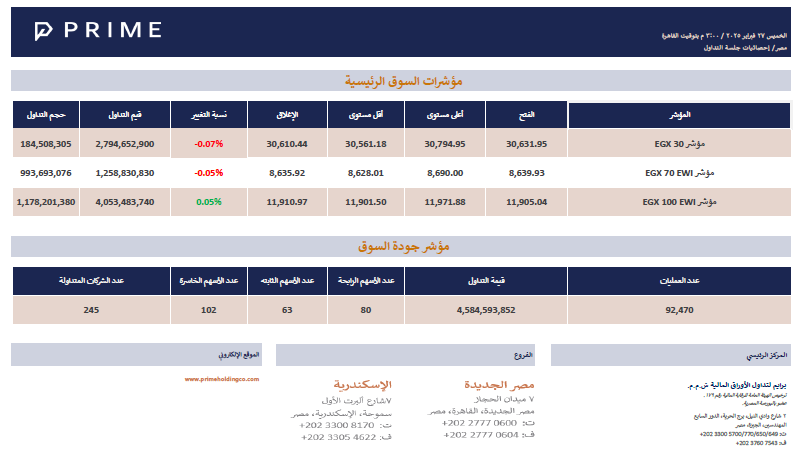 مؤشرات السوق الرئيسيةPRIME ResearchFeb 27, 2025ShareIn 250227733KB ∙ PDF fileDownloadDownload PreviousNext