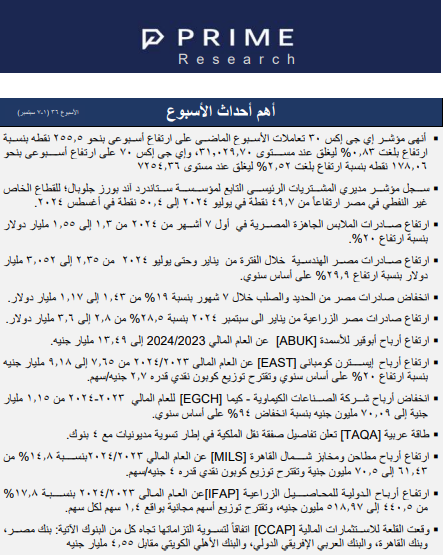 أهم أحداث الأسبوعPRIME ResearchSep 05, 2024ShareWeekly Highlights Ar 36415KB ∙ PDF fileDownloadDownloadPreviousNext