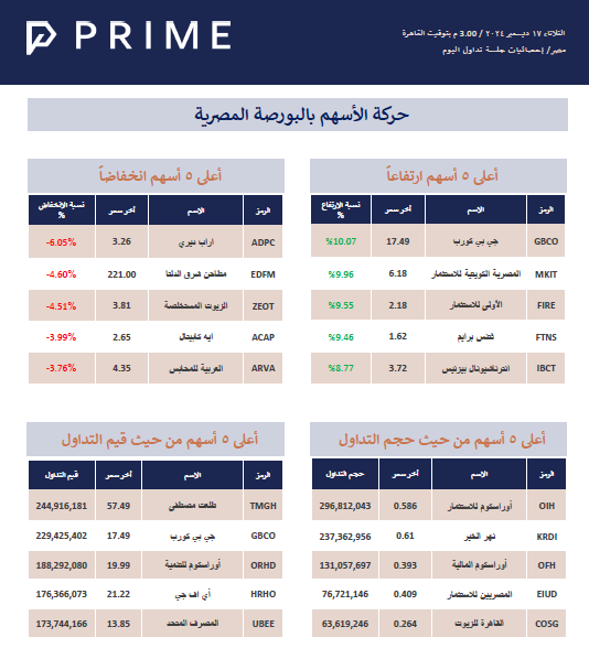 حركة الأسهم بالبورصة المصرية PRIME ResearchDec 17, 20242ShareStock Exchange 241217771KB ∙ PDF fileDownloadDownload PreviousNext