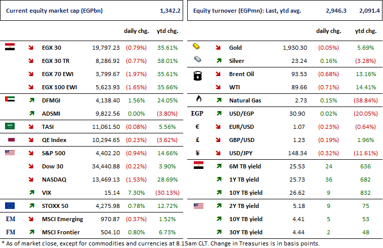 So far, the CBE has raised interest rates by 300bps ytd and a cumulative 1,100bps since March 2022. In its last meeting, the MPC cited “the balance of risks surrounding the inflation outlook” and “contain[ing] the inflationary pressures”, and “anchor[ing] inflation expectations around the CBE’s targets”.