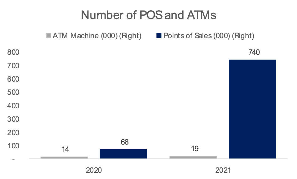 The number of Egypt ATM Machine has surged 37% to 19,000, while the number of POS has leaped to 740,000, from 68,000 a year earlier.
