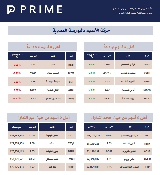 حركة الأسهم بالبورصة المصرية PRIME ResearchApr 06, 2025ShareStock Exchange 250406715KB ∙ PDF fileDownloadDownload PreviousNext