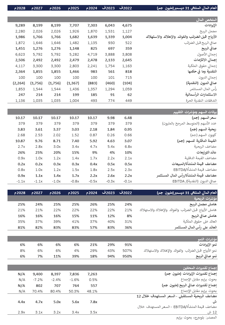 أنتج نموذج التدفقات النقدية المخصومة لخمس سنوات المحدث قيمة عادلة قدرها 12.5 جنيه للسهم (11.4 جنيه سابقًا) وسعر مستهدف خلال 12 شهر قدره 16.9 جنيه للسهم (15.1 جنيه سابقًا). نتوقع حالياً أن يبلغ متوسط سعر صرف العملة الأجنبية 47 جنيه/دولار في عام 2024 (مقابل 34 جنيه/دولار سابقًا) قبل أن يرتفع تدريجيًا إلى 63 جنيه/دولار بحلول عام 2028 (مقابل 42 جنيه/دولار في عام 2027 سابقًا). السعر المستهدف خلال 12 شهر المحدث يعني ضمنيا مضاعف ربحية لعام 2024 قدره 7.8 مرة فقط وصعود محتمل يبلغ 66%. وبالتالي، فإننا نحافظ على تصنيفنا عند زيادة الوزن النسبي/مخاطرة مرتفعة.