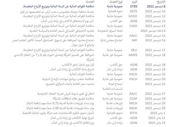 تنتهي NI Capital من الإجراءات القانونية والإدارية لإدراج MOT للاستثمار والمشروعات، الذراع الاستثماري لوزارة النقل، بالبورصة. ذكر أيضاً أن وزارة النقل تتطلع لإعداد وإدراج 18 شركة أخرى. (المال)