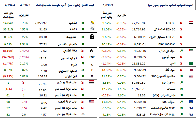 أعلنت أبو قير للأسمدة والصناعات الكيماوية [ABUK] عن انخفاض أرباحها بـ 3% على أساس سنوي في التسع أشهر 2023/2024 إلى 12 مليار جم بسبب انخفاض الإيرادات وانخفاض هامش مجمل الربح. ويعود انخفاض الإيرادات إلى انخفاض أسعار اليوريا العالمية. وفي الربع الثالث 2024، ارتفعت الأرباح بـ 46% على أساس سنوي إلى 8.1 مليار جم، بينما تراجعت الإيرادات بـ 11% على أساس سنوي إلى 5.4 مليار جم. تشير النتائج إلى مضاعف ربحية لآخر 12 شهر قدره 5.8 مرة. (إفصاح الشركة)