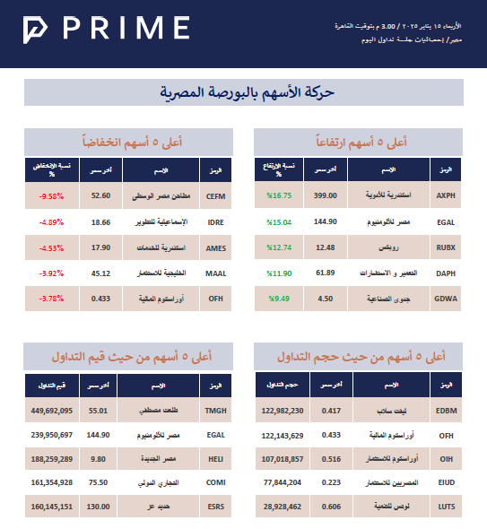حركة الأسهم بالبورصة المصرية PRIME ResearchJan 15, 2025ShareStock Exchange 250115713KB ∙ PDF fileDownloadDownload PreviousNext