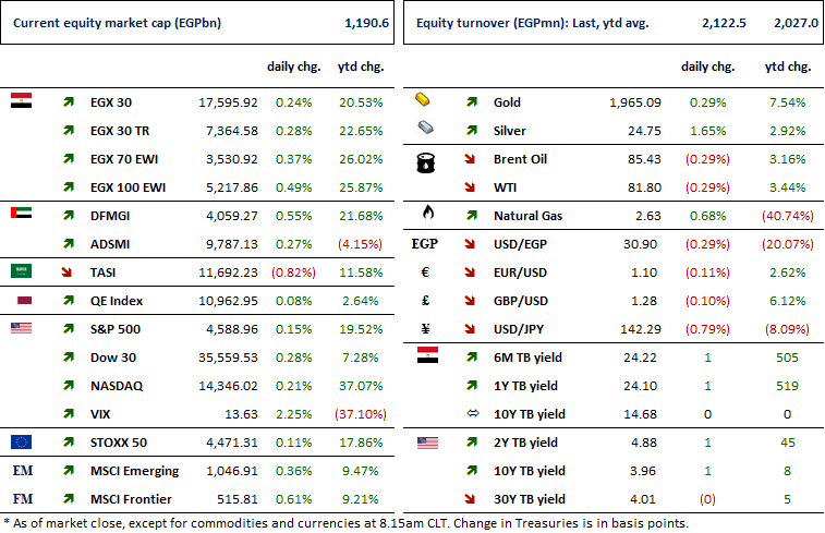 Delta Sugar [SUGR] reported H1 2023 preliminary net profits of EGP1.1bn vs. EGP544mn a year ago. Revenues came in at EGP3.5bn (+41% y/y), while gross profit margin improved by 12pp y/y to 47%. Meanwhile, SUGR recorded net profits of EGP765mn (+64% y/y) in Q2 2023 on higher revenues of EGP2.8bn (+45% y/y), while gross profit margin improved by 12pp y/y to 51%. (Company disclosure)