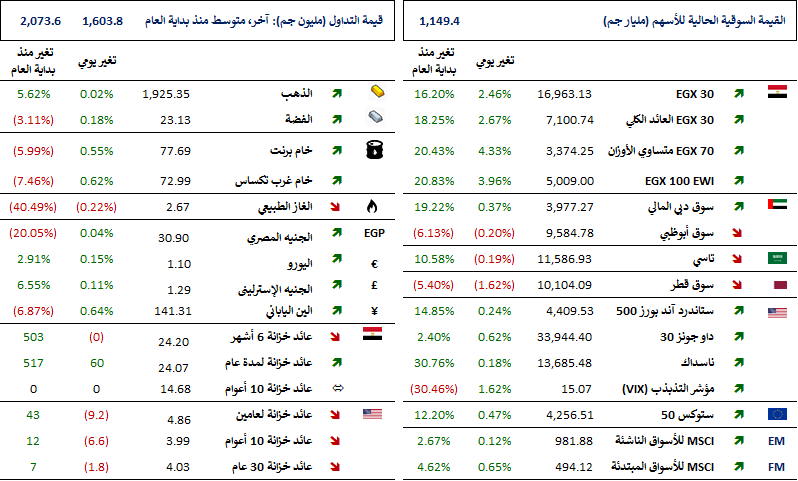 قررت البورصة المصرية عدم الاعتداد بأثر بعض العمليات على أسهم طاقة عربية [TAQA] الأمس. لم تؤثر هذه المعاملات على سعر الإقفال اللحظي نتيجة لذلك. تراوح النطاق السعري لجميع العمليات التي تمت الأمس من 13 جم/سهم إلى 125 جم/سهم. تم تداول ما مجموعه 801,301 سهم بقيمة 15.7 مليون جم، مع إغلاق السهم عند 20 جم/سهم (+3900% من سعر الافتتاح). (البورصة المصرية)