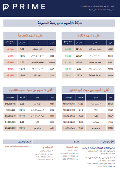 حركة الأسهم بالبورصة المصرية PRIME ResearchNov 03, 20242Shareحركة الأسهم 241103776KB ∙ PDF fileDownloadDownloadPreviousNext