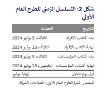 يبدأ الاكتتاب الخاص والعام لـ ACTF، بدءًا من 9 يوليو 2024. بالنسبة للمستثمرين الأفراد في الاكتتاب الخاص، يبلغ الحد الأدنى للاستثمار 1.75 مليون سهم، بينما يبلغ الحد الأدنى للمؤسسات 3.5 مليون سهم بدون حد أقصى. يتم الدفع بعد التخصيص من خلال البنك العربي الأفريقي الدولي حيث يمكن لجميع شركات الوساطة تقديم الطلبات. بالنسبة للاكتتاب العام، يلزم دفع 25% دفعة أولى قبل التخصيص. ولزيادة حماية المستثمرين، سيتم إنشاء صندوق استقرار يغطي الشريحة العامة لأول 30 يوم تداول. بالإضافة إلى ذلك، وعدت ACFT ببدء برنامج إعادة شراء الأسهم بنسبة 10% خلال أول 90 يومًا إذا انخفض سعر السهم إلى ما دون سعر الاكتتاب البالغ 2.9 جم/سهم. بالإضافة إلى ذلك، يخضع المساهمون الحاليون لفترة حظر مدتها 12 شهرًا ومن المحتمل تمديدها لمدة عامين للمديرين التنفيذيين والمساهمين الاستراتيجيين (أقل من 10% من الحصة).