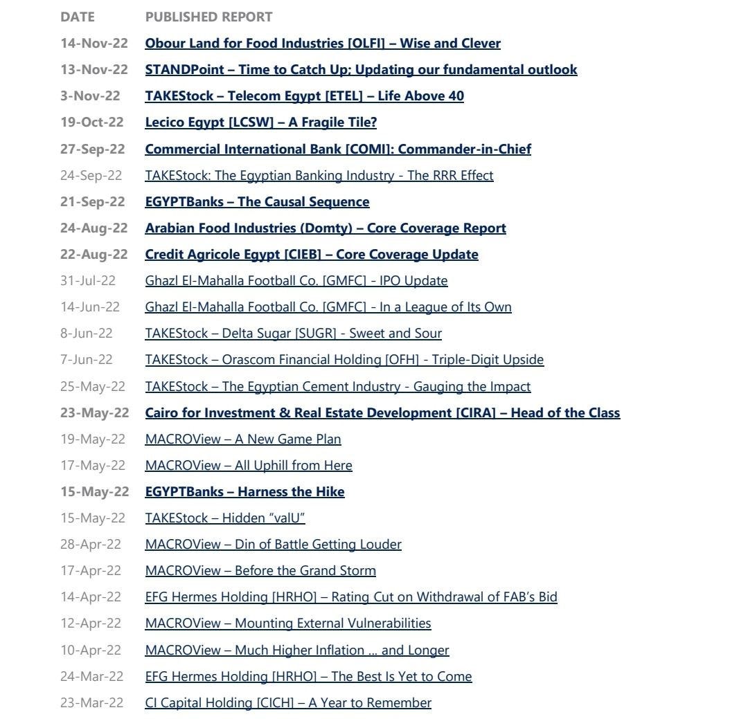 EIPICO [PHAR] reported Q3 2022 net profits of EGP113mn (+29% y/y) on higher revenues of EGP953mn (+9% y/y). Gross profit margin expanded to 43% (+3pp y/y). On a separate note, PHAR's BoD approved dropping the acquisition of UP Pharma. In addition, PHAR will increase its paid-in capital by 15% to EGP1.14bn at fair value which is yet to be determined by an IFA. (Company disclosures: 1, 2)