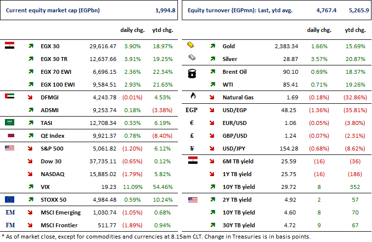 Egypt's Balance of Payments (BoP) has shown a five times wider current account deficit for H1 FY24 of USD9.6bn vs. USD1.8bn last year. This comes on the back of a decrease in exports by 24% y/y to USD16.4bn due to a 63% y/y decline in oil exports to USD3.2bn leading to a trade deficit of USD18.7bn (+21% y/y). (Enterprise)