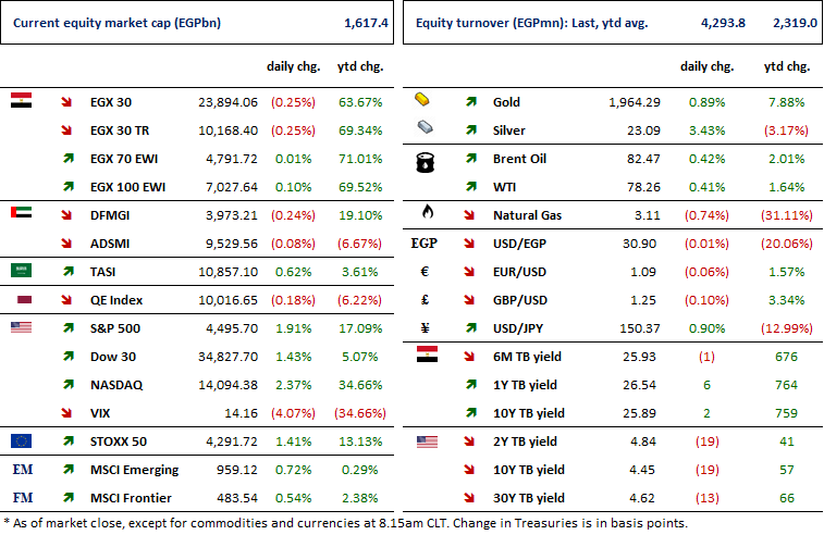 Eastern Co. [EAST] posted its Q1 2023/24 preliminary results recording a 20% y/y decline in net profits to EGP1.1bn on a drop in revenues and gross profit margin to EGP3.1bn (-32% y/y) and 31% (-20pp y/y). (Company disclosure)
