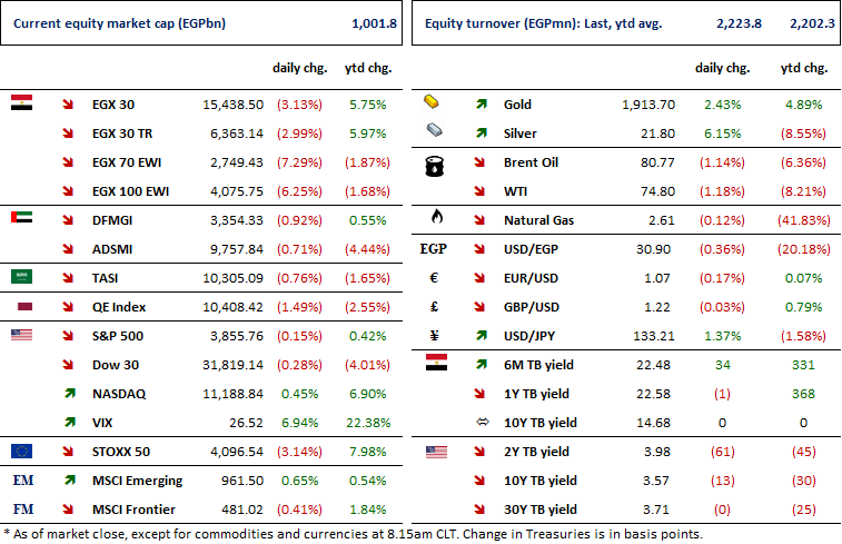 Mansoura Poultry’s [MPCO] 2022 net loss came in at EGP33.8mn compared to a net profit of EGP0.6mn in 2021 despite a 2% y/y growth in revenues to EGP143mn. Gross loss came at EGP25mn compared to gross profit of EGP10mn in 2021, driven by higher fodder costs. (Company disclosure)
