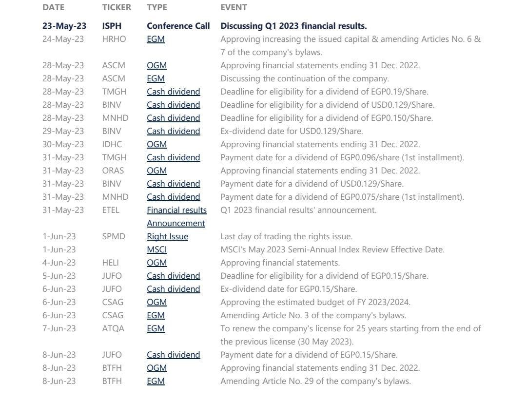 · Ready mix concrete sales amounted to EGP97mn compared to EGP68mn (+43% y/y) due to selling 82K cubic meters of concrete during Q1 2023 (+5% y/y). Meanwhile, ready mix concrete segment had a GPM of 7% compared to a GLM of -1% in Q1 2022. (Company disclosure)