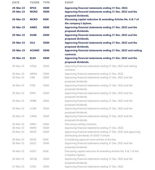 Egypt Gas’s [EGAS] BoD approved a cash dividend of EGP1.25/share, implying a 4% yield. (Company disclosure)