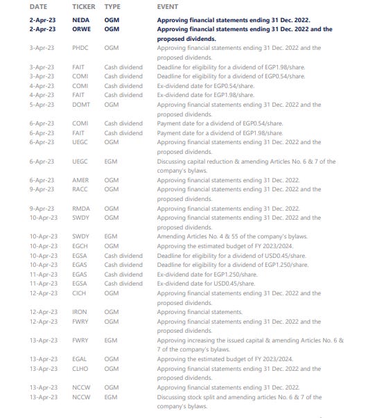 Macro Pharmaceutical Group’s [MCRO] OGM approved distributing a cash dividend of EGP0.1067/share, implying a 3% yield. (Company disclosure)