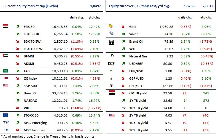 Meanwhile, local investors, mainly banks, will likely exhibit higher interest in Egypt’s debt market, since the probability of hiking rates is now much lower. However, foreign investors will likely continue to shrug off Egypt’s currently-lucrative local debt market because the FX risk can easily shave off those high yields. Foreign investors often double down on both high yields and FX gains from a strengthening local currency, but the latter bit is still missing. So what about the FX rate, you may ask? This is like asking what the CBE’s governor will eat for Iftar today. We can only guess what the CBE will do with the FX rate, but our base-case scenario for the EGP is to overshoot further, albeit gradually, to EGP32.5/USD by end of Q2 2023 before normalizing downward to EGP30.0/USD by end of 2023. This should be driven by foreign direct investments (FDIs) from the GCC in some of the 32+ state-owned companies that are up for grabs.