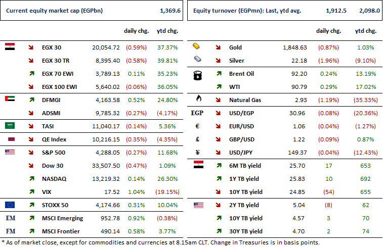 In a meeting held on 30 September, Abu Qir Fertilizers' [ABUK] OGM has approved distributing dividends of EGP7/share on three payments. The first of EGP2/share on 26 October 2023, the second of EGP3/share on 28 December 2023, and the third of EGP2/share on 31 January 2024. This gives a dividends yield of 10% using yesterday's closing price. (Company disclosure)