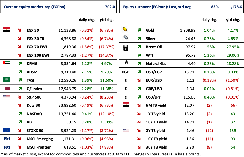 Housing & Development Bank’s [HDBK] preliminary stand-alone 2021 figures showed flat net earnings of EGP1.8bn, despite a 17% higher net interest income of EGP3.7bn. We note that HDBK’s BoD has suggested a DPS of EGP2.5/share, implying a 6% yield and pending CBE approval. (Company disclosure)