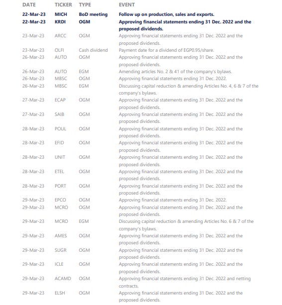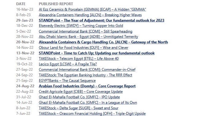 As we illustrated in our 2023 annual strategy outlook, SPP has outperformed all main market indices since inception back in 2021. However, the market has been on a downward spiral as EGX 30 (-14.3%), EGX 70 EWI (-12.1%), and EGX 100 EWI (-13.6%) all fell in the period from 29 January through 20 March 2023. Similarly, SPP fell 16.2% over the same period, yet maintaining its long-term outperformance nonetheless. We are adding four new stocks to SPP within our three key themes: (1) beneficiaries of a high interest rate environment, (2) export-oriented businesses, and (3) companies with long USD (i.e. non-EGP) positions. We note that today, Mother’s Day, marks the first anniversary of the first major EGP devaluation seen in 2022.