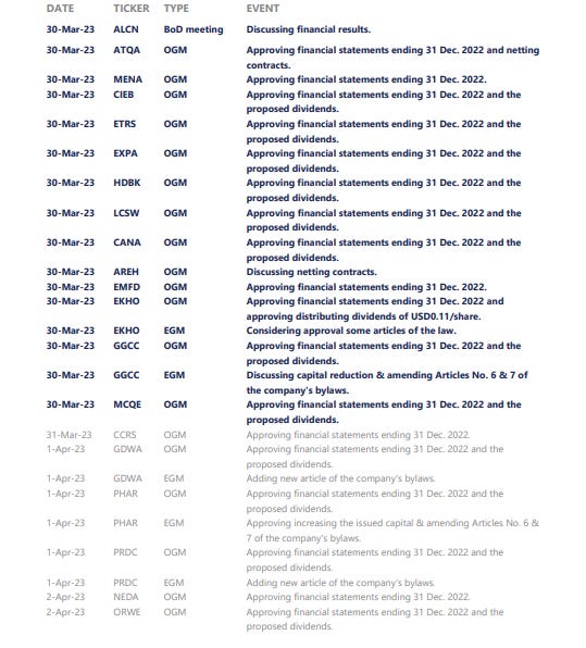 Cairo Poultry’s [POUL] OGM decided not to distribute any dividends of 2022 net profits. (Company disclosure)