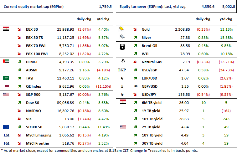 The EGX studies the listing of six new companies, three of which will be in the main market in the food, energy, and real estate sectors. Additionally, the EGX is planning the launch of the Islamic Index through Q2 2024 which will include 30-50 companies that are compatible with the Islamic Shariaa. (Asharq Business)
