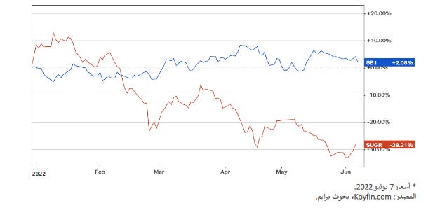 تراجع أداء السهم عن أسعار السكر العالمية منذ بداية العام