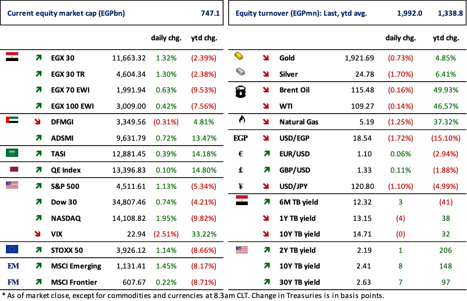 CI Capital Holding [CICH] has posted its results for 2021. CICH achieved net earnings growth of 44% y/y to EGP681mn. Bottom line growth came derived by 56% y/y higher group revenues of EGP3.7bn. CICH is currently traded at 2021 P/E and P/B of 6.1x and 1.2x respectively, with 2021 ROAE at 20.6%. (Company disclosure)