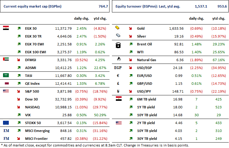 Egypt Aluminum’s [EGAL] preliminary Q1 2022/23 net earnings came in at EGP642mn (+110% y/y). Top line grew to EGP3.4bn (+4% y/y), while GPM came in at 26% vs. 16% a year earlier. (Company disclosure)