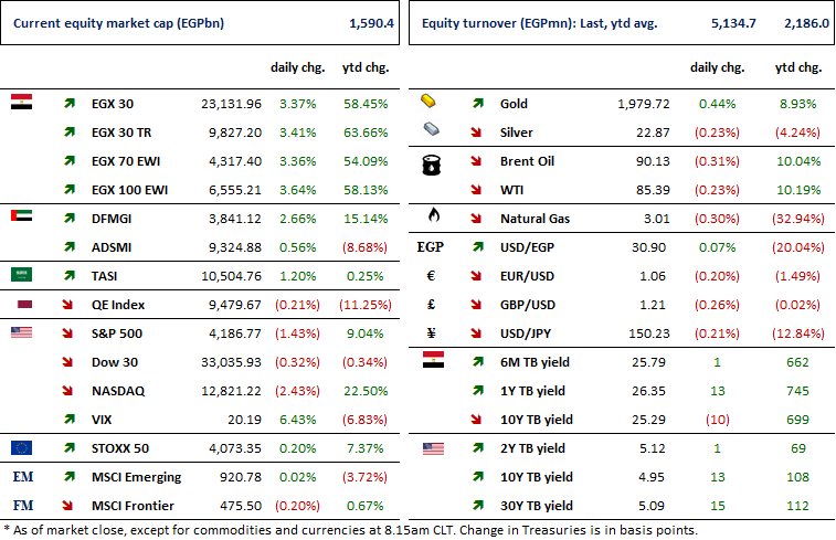 Egypt's LNG exports has decreased to USD2.2bn in the first 7 months of 2023, with a 60% decrease y/y. Petroleum products exports has also decreased to USD1.2bn compared to USD3.3bn in the comparable period. (Economy Plus)