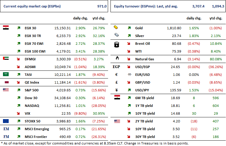 EFG Hermes Holding [HRHO] has closed the seventh issuances of securitized bond for Premium International worth EGP200.6mn. We note that the issuance is a part of securitization program worth EGP2bn. On the other hand, HRHO’s IB arm has finalized its advisory for Americana Group’s dual listing IPO in Saudi Arabia and the UAE, with an IPO size of USD1.8bn. (Company disclosure) (Amwal Al Ghad)