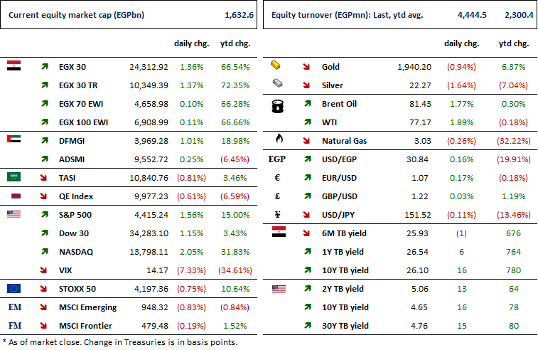 Madinet Masr for Housing and Development [MASR] reported its Q3 2023 preliminary results posting a 151% y/y growth in net profits to EGP773.2mn on higher revenues of EGP2.2bn (+85% y/y) and improved gross profit margin of 67.1% (+10.6pp y/y). MASR, recorded its highest contract sales in Q3 2023 at EGP9.6bn (+192% y/y). (Company disclosure)