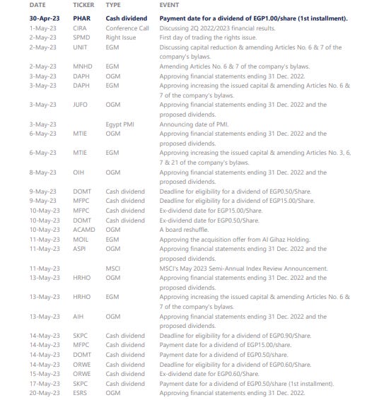 The Prime Minister said that the government is looking to raise c.USD2bn from the scheduled IPO program before June. Moreover, he also said that The Sovereign Fund of Egypt is currently working to add eight new military-owned companies to the program in addition to Safi and Wataniya. (Al-Borsa)