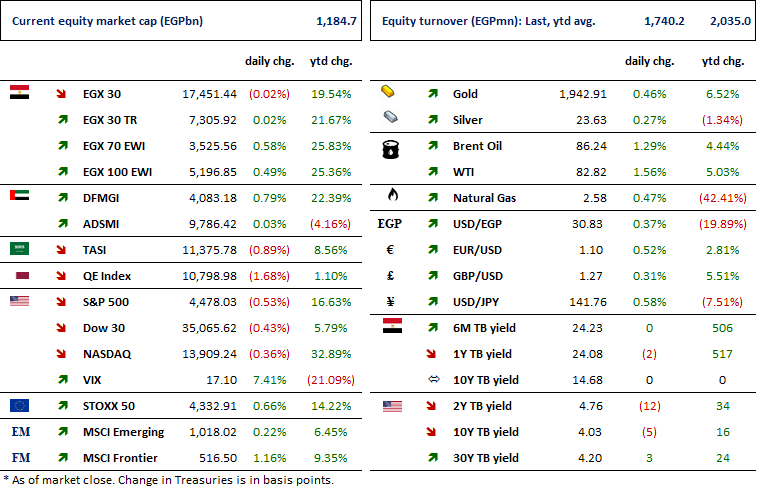 Sidi Kerir Petrochemicals Co. (Sidpec) [SKPC] reported its unaudited H1 2023 results, recording net profits of EGP1.2bn (+158% y/y) on higher revenues of EGP6.6bn (+69% y/y) with a GPM of 31% (+11pp y/y). Furthermore, Sidpec’s Q2 2023 showed bottom-line growth of 32% q/q to EGP689mn, while revenues decreased to EGP2.9bn (-18% q/q) with a GPM of 34% (+5% q/q). SKPC is currently trading at an LTM P/E of 8.7x, based on Thursday’s closing price. (Company disclosure)