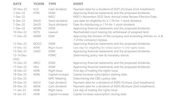 Arab Cotton Ginning [ACGC] OGM held on 27 November 2022 approved paying a DPS of EGP0.15/share, implying 5% in dividend yield. (Company disclosure)
